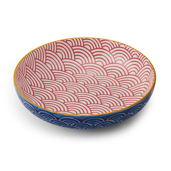 These vibrant stoneware bowls feature a shallow design, making them ideal for serving pasta, stews, salads, stir-fries, and more. With eye-catching patterns, they add charm to both everyday meals and special occasions. Conveniently microwave and dishwasher-safe, they are easy to use and maintain.