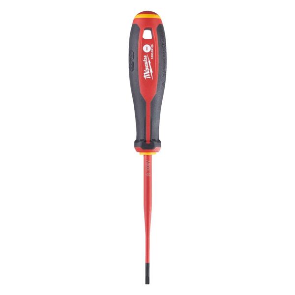 This Milwaukee VDE screwdriver is a professional-grade tool engineered for electrical safety and precision, providing a slim profile for accessing deep-seated screws. It combines high-voltage protection with an ergonomic tri-lobe handle, ensuring both user safety and maximum efficiency during demanding installation and maintenance tasks.