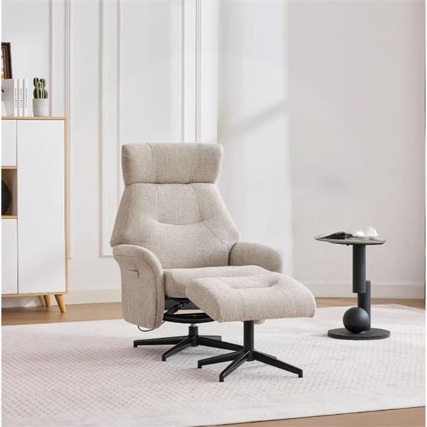 The Mira Swivel Chair and Footstool in Oatmeal provides an exceptionally supportive seating solution for modern living spaces. This high back recliner is engineered with a smooth reclining mechanism and a coordinated footstool, ensuring full body comfort and optimal leg support during everyday relaxation.