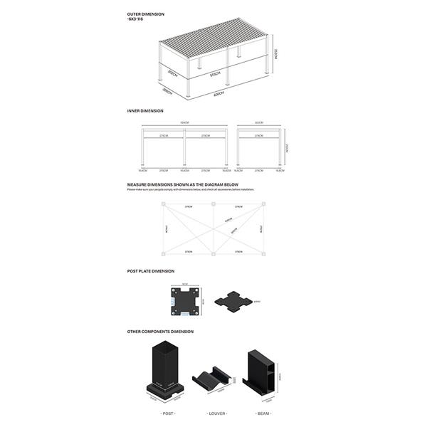 Transform your outdoor space with the NEO Louvered Pergola Led Lighting 6Mx3m, designed not only for aesthetics but also for functionality. This innovative pergola combines modern design with intelligent lighting, providing a stylish solution for any garden or patio setting.