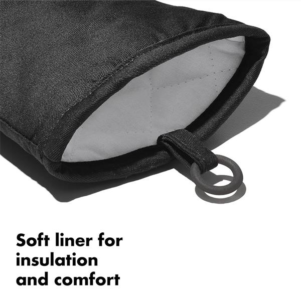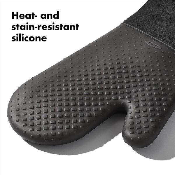 Tapered silicone Oven Mitt offers snug fit, 13-inch length protects forearm.
