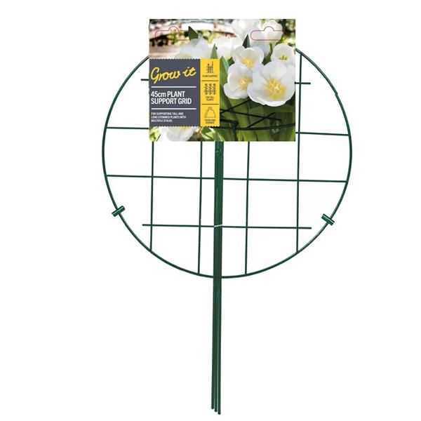 Designed with a dark green plastic coating that blends naturally with foliage, it is made from tough, durable steel with an added rot-resistant plastic coating. Plants grow through the grid for strong, even support.