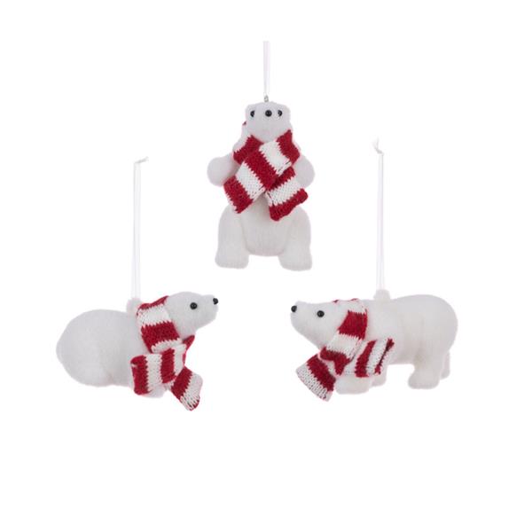 The Floralsilk Polar Bear With Scarf Decoration, available in three assorted designs and measuring 12cm, is an absolutely adorable addition to any winter or festive display, bringing a charming touch of Arctic cuteness.