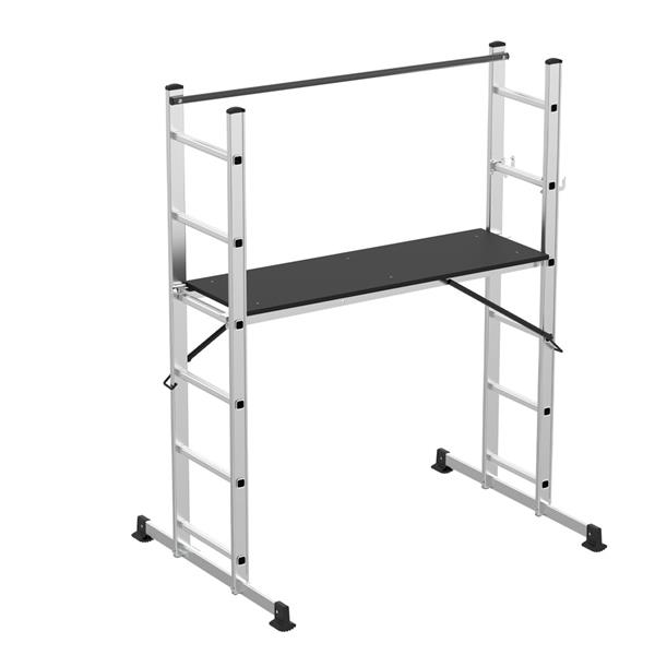 The Protekk 3 In 1 Multi Function Scaffolding Ladder ALLLAD1009 is a highly versatile aluminium access system designed to serve three core functions: a leaning extension ladder, an A-frame step ladder, and a stable working scaffold platform. This model is constructed from lightweight, robust aluminium for easy transportation and is built to the EN131 safety standard with a maximum load capacity of 150 kg. The multi function design is ideal for tradesmen and serious DIY enthusiasts, offering a secure, anti-slip work platform that is typically around 1.47 metres by 0.4 metres, providing a safer and more comfortable alternative to a standard ladder for tasks like painting and decorating.