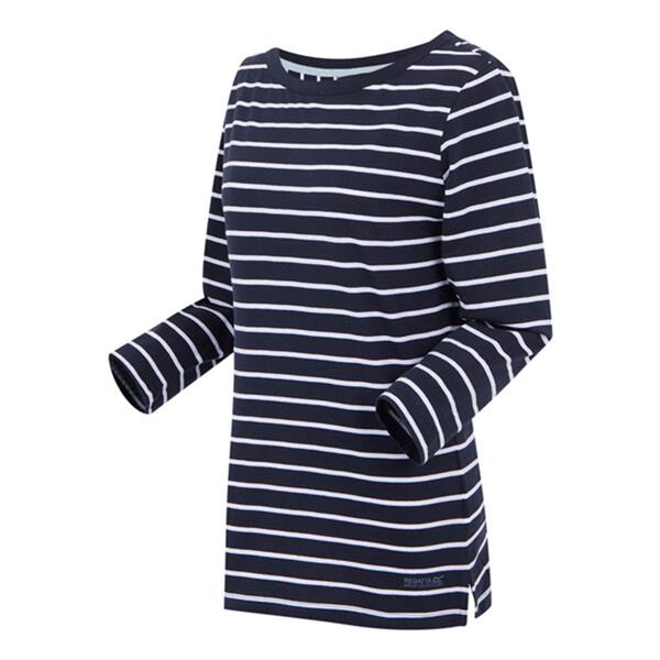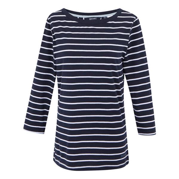 The Regatta Bayletta Tee in Navy/White Stripe is the perfect addition to your casual wardrobe. Crafted from high-quality, breathable fabric, this T-shirt ensures comfort and style for everyday wear. Its classic navy and white stripe design complements various outfits, making it ideal for layering or standalone use. Whether you're exploring the outdoors or enjoying a day out with friends, the Bayletta Tee provides both versatility and a fashionable edge. Elevate your casual look effortlessly with this essential piece.