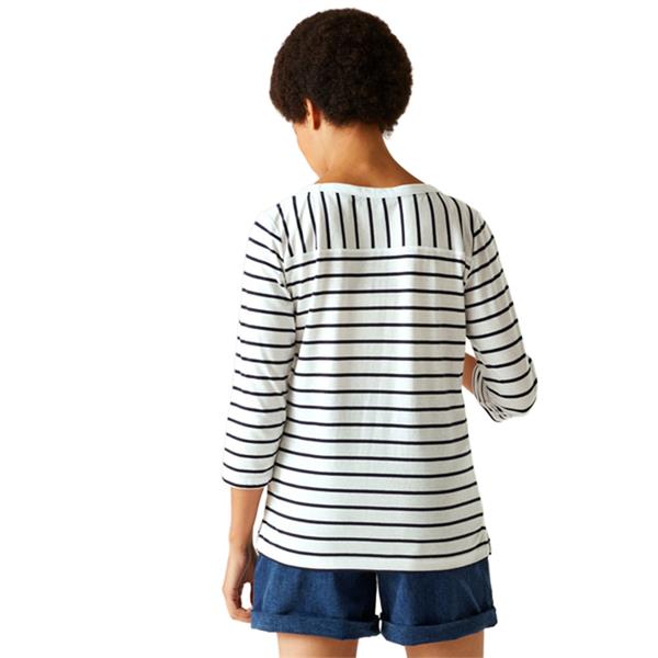 The Regatta Bayletta Tee in White/Navy Stripe is the ideal addition to your casual wardrobe. Crafted from high-quality, breathable cotton, this stylish T-shirt ensures all-day comfort while exuding a chic look. Its classic striped design is versatile, making it perfect for layering or wearing alone. Whether you’re enjoying a day out or lounging at home, this tee offers both functionality and flair. Elevate your everyday style effortlessly with the Regatta Bayletta Tee, where quality meets contemporary design.