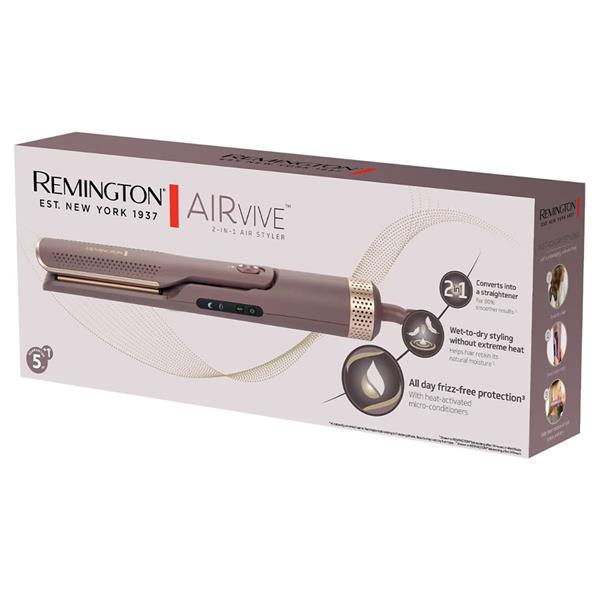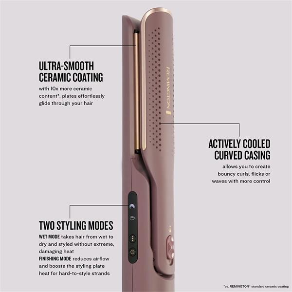 Simplify your styling routine and achieve salon-quality results with the revolutionary Remington AIRvive™ 2-in-1 Air Styler. This versatile tool is designed to both dry and straighten hair in a single step, saving you valuable time. Use the innovative Wet Mode to gently dry and smooth your damp hair with a continuous stream of cool airflow, eliminating the need for a separate blow dryer. Then, switch to Finishing Mode to activate the heated plates, perfecting your style and locking in a flawless, sleek finish. Throughout the entire process, Ionic Air Technology actively works to reduce static and combat frizz, while heat-activated micro-conditioners protect your hair and enhance its natural shine. This combination of powerful drying and precise styling technology allows you to achieve a smooth, healthy-looking style with ease.