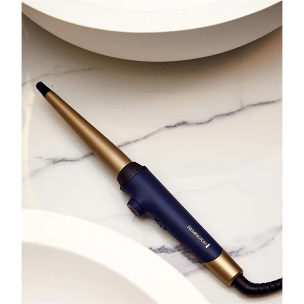 The Remington Sapphire Curl Wand is a premium hair styling tool designed to create professional-looking curls and waves with ease. Featuring a tapered, conical barrel infused with real sapphire and an advanced ceramic coating, it glides smoothly through the hair, helping to reduce frizz and enhance shine for a beautifully smooth and glossy finish. The wand offers variable heat settings, allowing for customisable styling from 130°C to 200°C to suit all hair types, and heats up quickly in just 30 seconds. With a stay-cool tip, heat protection stand, and an automatic safety shut-off, it combines effective performance with user-friendly features for a safe and stylish curling experience.
