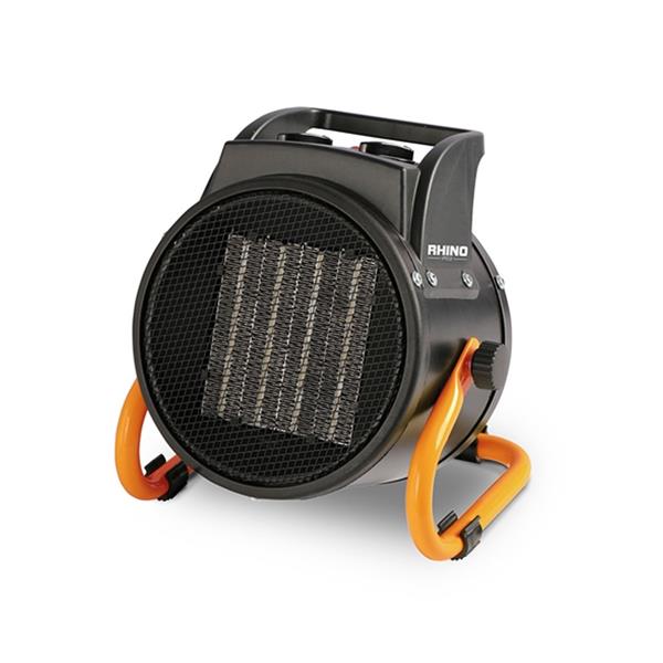 This versatile 2kW electric fan heater features a sturdy, adjustable frame, making it perfect for use in garages, warehouses, construction sites, and workshops. Designed for instant heat output, it is easily transportable and user-friendly. Equipped with three heat settings and an adjustable thermostat for precise temperature control, the heater operates with minimal noise. Dimensions are 240mm (H) x 317mm (W) x 189mm (D), and the unit weighs 4.15kg.