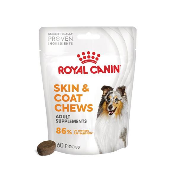 Give your dog the extra care they deserve with ROYAL CANIN Skin & Coat Adult Chews. Developed by veterinarians and backed by over 50 years of research, these soft chews are designed to support healthy skin and a shiny, well-nourished coat. Enriched with Omega-3 and 6 fatty acids, zinc, and GLA, they help nourish the skin, reinforce the skin barrier, and encourage healthy cell renewal.