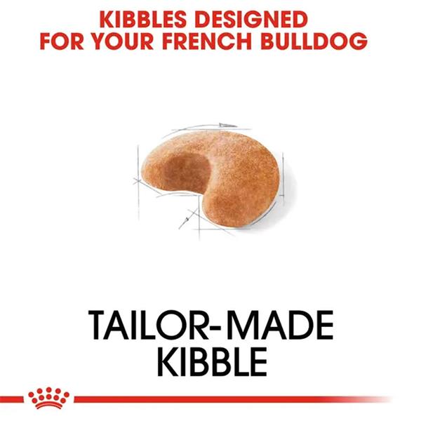 Royal Canin French Bulldog Adult is tailored for French Bulldogs over 12 months old, supporting their muscular build, sensitive digestion, and skin health.