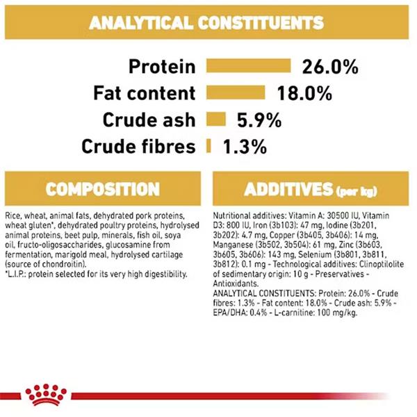 This compact, muscular breed benefits from a diet rich in quality protein and L-carnitine to help maintain muscle mass. The formula also supports healthy skin and coat with omega-3 fatty acids (EPA & DHA) and a special nutrient complex.
