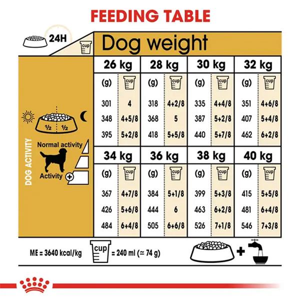 COMPOSITION: dehydrated poultry proteins, rice, wheat, maize, animal fats, wheat gluten*, hydrolysed animal proteins, maize gluten, pea protein, beet pulp, vegetable fibres, yeast products, fish oil, minerals, soya oil, psyllium husks and seeds, fructo-oligosaccharides, glucosamine from fermentation, borage oil (0.1%), marigold meal, hydrolysed cartilage (source of chondroitin). ADDITIVES (per kg): Nutritional additives: Vitamin A: 26800 IU, Vitamin D3: 800 IU, Iron (3b103): 69 mg, Iodine (3b201, 3b202): 4 mg, Copper (3b405, 3b406): 4 mg, Manganese (3b502, 3b504): 43 mg, Zinc (3b603, 3b605, 3b606): 132 mg, Selenium (3b801, 3b811, 3b812): 0.22 mg - Technological additives: Clinoptilolite of sedimentary origin 10 g - Preservatives - Antioxidants. ANALYTICAL CONSTITUENTS: Protein: 30.0% - Crude fibre: 3.4% - Fat content: 13.0% - Crude ash: 6.7% - EPA+DHA: 0.4% - Metabolisable energy: 3640 kcal/kg.