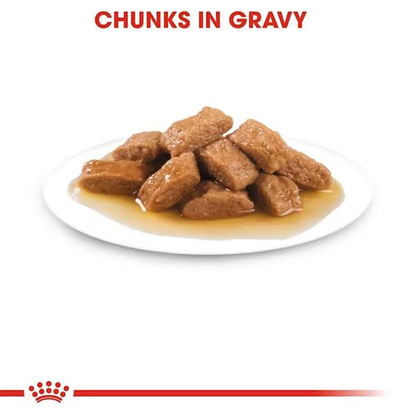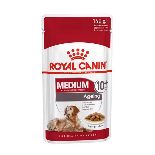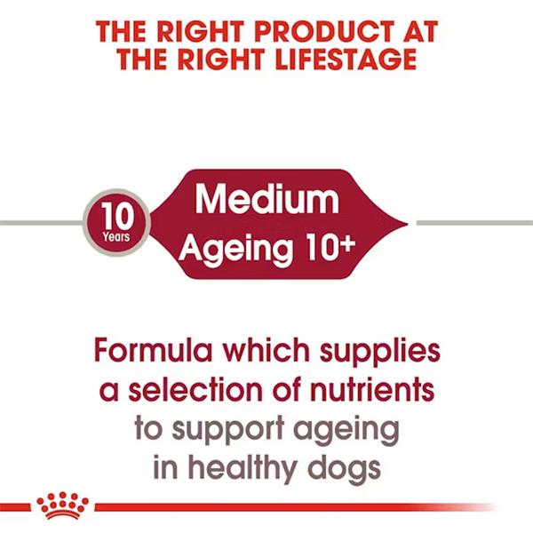 Designed for medium-sized dogs over 10 years old weighing 11-25kg, ROYAL CANIN Medium Ageing 10+ in Gravy meets the specific nutritional needs of senior dogs. It features a unique antioxidant complex to combat free radicals and supports healthy joints and bones with EPA and DHA. The formula also helps maintain a shiny coat and healthy skin. For variety, ROYAL CANIN Medium Ageing 10+ is available as crunchy dry kibble, and mixed feeding guidelines ensure balanced nutrition.