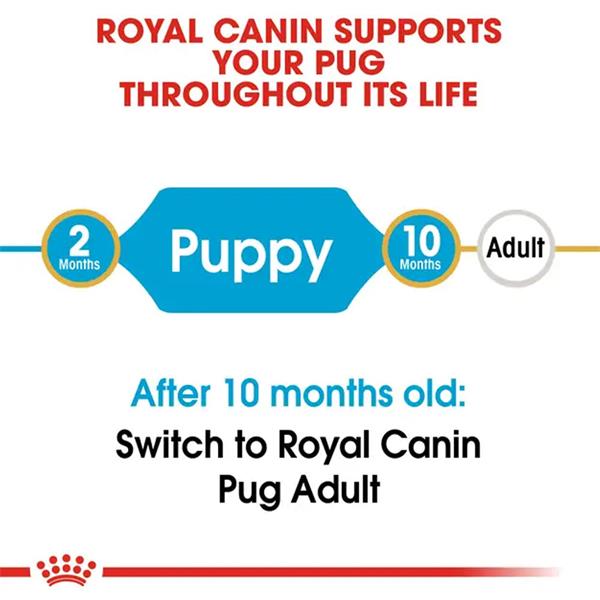 ROYAL CANIN Pug Puppy is specially formulated for Pugs up to 10 months old, supporting their unique needs during this crucial growth stage.