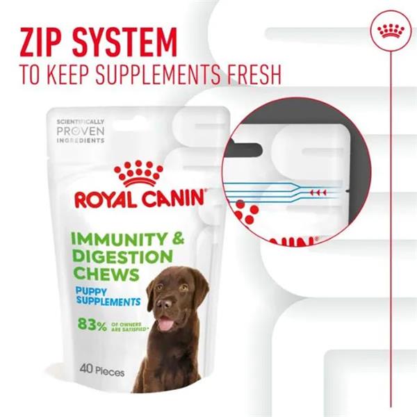 Support your puppy’s development with ROYAL CANIN Immunity & Digestion Puppy Chews.