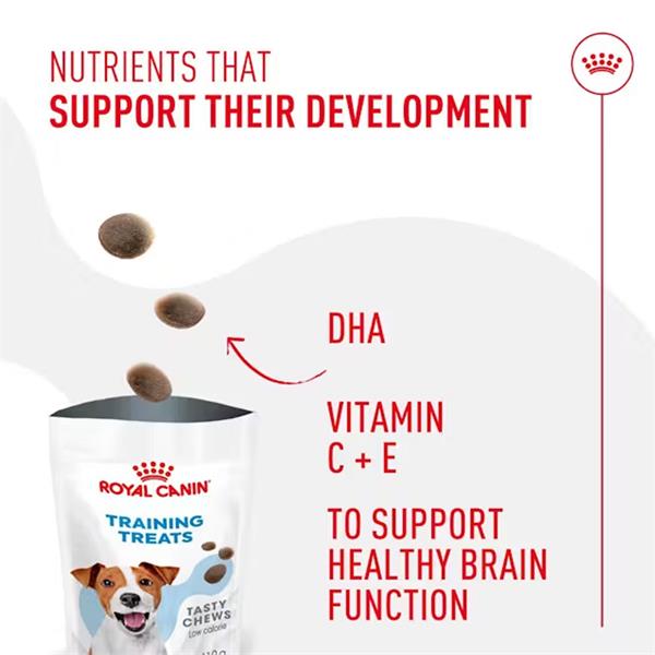 ROYAL CANIN Training Treats are suitable for dogs over 6 months and expertly formulated by vets. Backed by over 50 years of nutritional research, they combine taste and health to reward good behaviour during training.