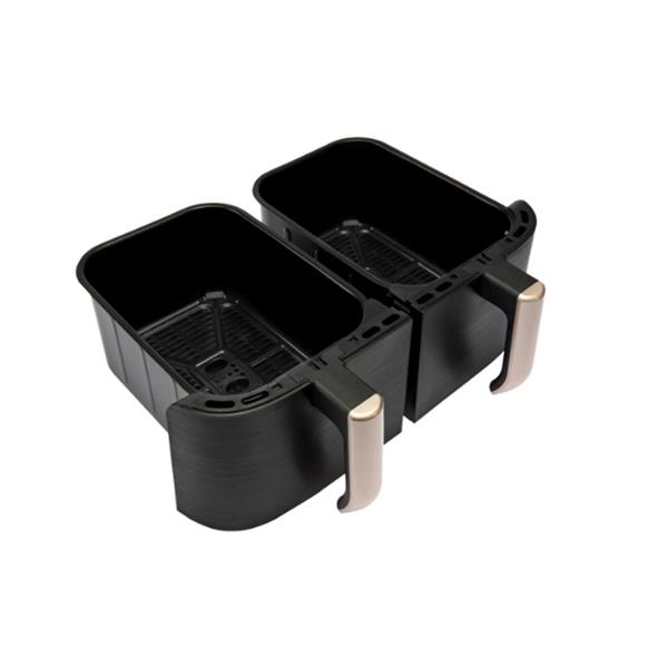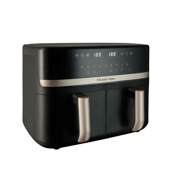 The Russell Hobbs Dual Airfryer 9L is a versatile and efficient kitchen appliance designed to make healthy cooking easy and convenient, featuring two independent cooking baskets that allow you to prepare different foods at the same time with precise temperature and time control. With a generous 9-litre total capacity, it is ideal for families or entertaining, enabling you to cook larger portions or multiple dishes simultaneously. Using rapid air circulation technology, it delivers crispy, evenly cooked results with little to no oil, helping to reduce fat while maintaining great taste and texture. Its sleek, modern design, intuitive digital controls, and multiple preset cooking functions make it simple to use, easy to clean, and a practical addition to any contemporary kitchen.