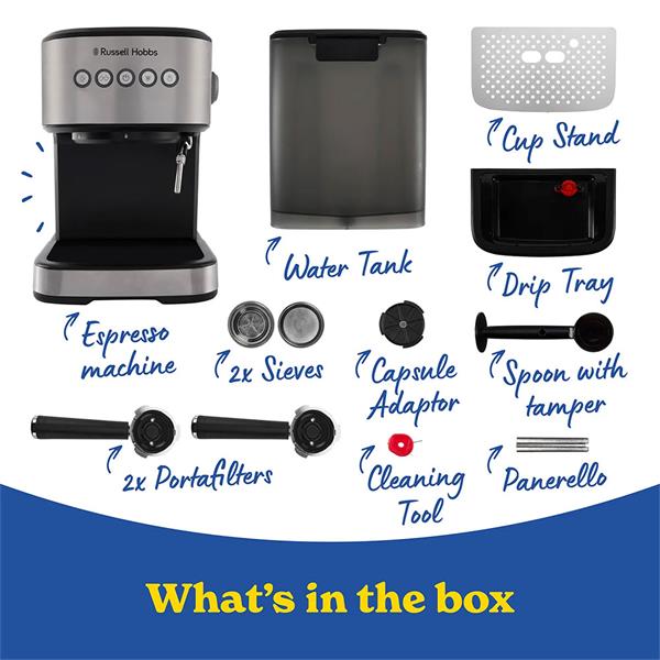 The Russell Hobbs Heaton Pumped Coffee Maker & Pod is your ultimate brewing companion, expertly designed to deliver rich, flavourful coffee with every use. This versatile machine accommodates both ground coffee and pods, ensuring you enjoy your favourite brews with ease. Its rapid brew technology heats water quickly, allowing you to savour your coffee in mere minutes. The sleek design complements any kitchen decor, while its user-friendly interface makes it accessible for everyone, adhering to the European Accessibility Act guidelines. Enjoy the perfect cup of coffee effortlessly with this stylish appliance.
