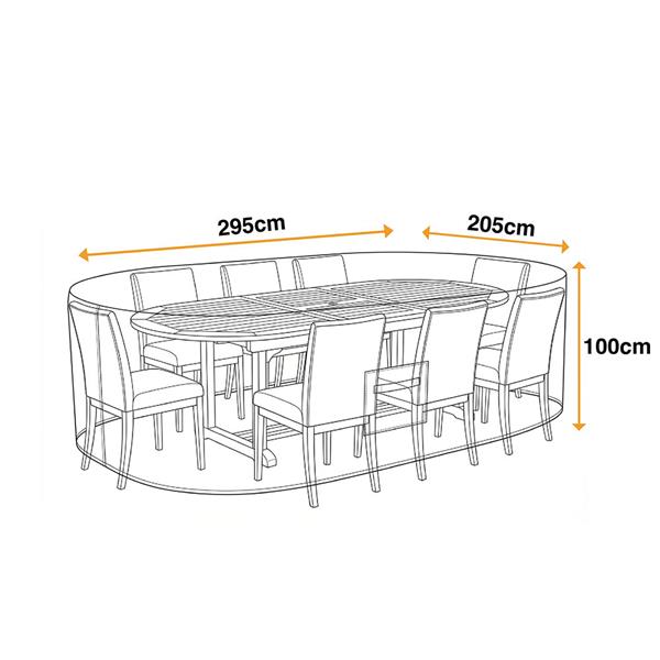 The Sahara Premium 8 Seater Oval Garden Furniture Cover is the ultimate protective solution for your outdoor furniture. Crafted from water resistant and breathable fabric, it effectively prevents condensation and mildew, ensuring your furniture stays in pristine condition. With UV stability for lasting sun protection, this cover is built to endure the elements. It features a secure pull chord with lock for added security, and Easygrip handles for effortless removal. The multilayer ventilation system keeps airflow consistent while preventing moisture build-up, making it the ideal choice for your garden space.
