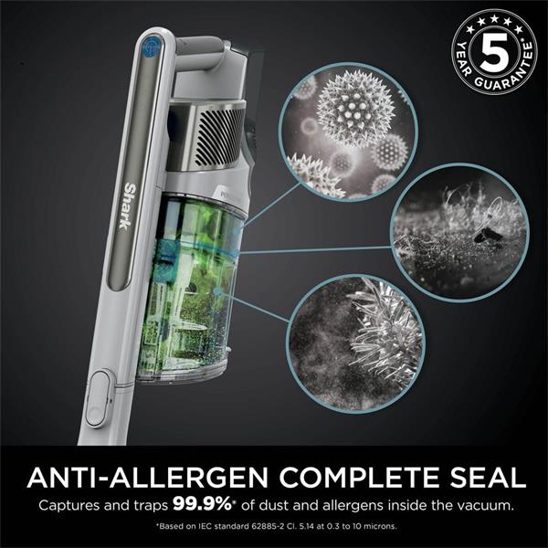 The Anti-Allergen Complete Seal traps over 99.9% of dust and allergens inside the vacuum, preventing them from being released back into the air—perfect for allergy sufferers.