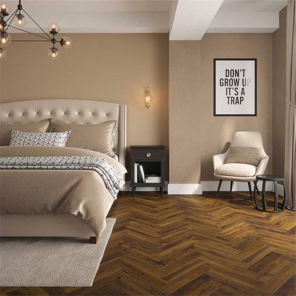 Smoked Cathedral Oak Herringbone is a 12mm laminate flooring that offers an incredibly authentic look and feel. The bevelled planks and click-fit system make it easy to install, while the AC4 rating ensures it's durable enough for heavy domestic and medium commercial use.
