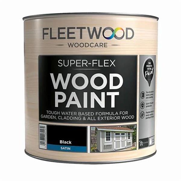 Fleetwood Super Flex Wood Paint for Exterior Wood Superflex is a tough, water based, durable paint suitable for cladding and exterior wood (excluding Decking). This self priming product is touch dry in 30 minutes with upto 10 years protection that resists cracking, peeling and flaking.