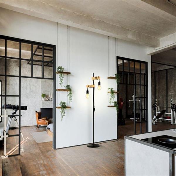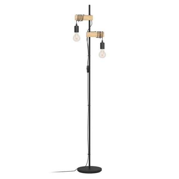 The Townshend floor lamp is easy to use with its in-line switch. It requires 2 x E27 lightbulbs (not included) to operate. Perfect for living rooms, bedrooms, or home offices, the Townshend floor lamp provides ample light while serving as a striking decorative feature. The combination of its slender black frame and natural wood tones makes it a versatile option that complements a variety of interior styles, from industrial to Scandinavian-inspired spaces. With its tall and elegant structure, the Townshend Standing Light (2) offers both practical illumination and a refined sense of style, making it an ideal choice for those looking to add character and sophistication to their home.