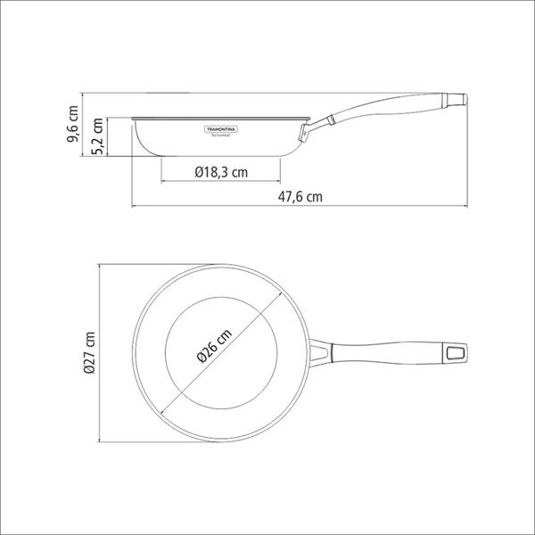 • Product dimensions (length with handle x width x height): 47.6cm x 27cm (26cm internal diameter) x 9.6cm