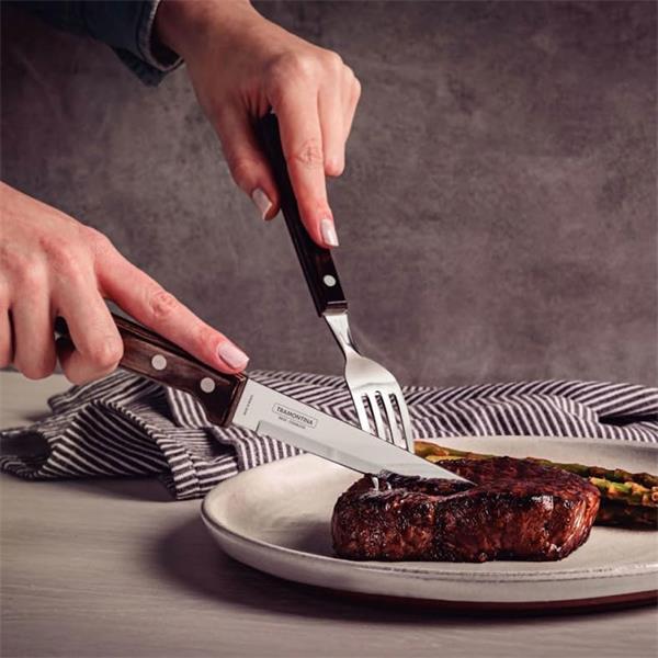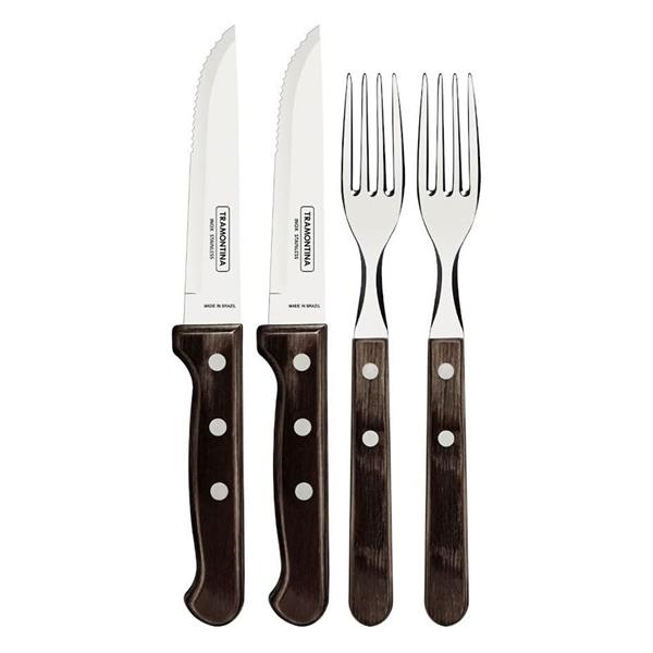 This essential set includes two super-sharp 5" Gaucho steak knives and two perfectly matched steak forks. Each piece features a real wood (Polywood) handle, designed not only for a comfortable grip but also for ultimate convenience – they're completely dishwasher safe!