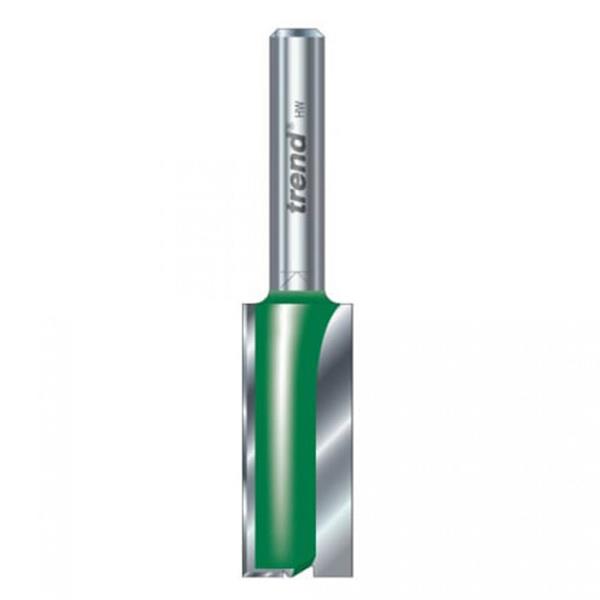 Trend Craft Pro Cutter with two flute carbide TCT tips for cleaner cutting edges and fast clearance of waste in all timber and timber based materials. With a bottom cut feature. The PTFE coating minimises heat and resin build up for increased cutter performance and longevity.
