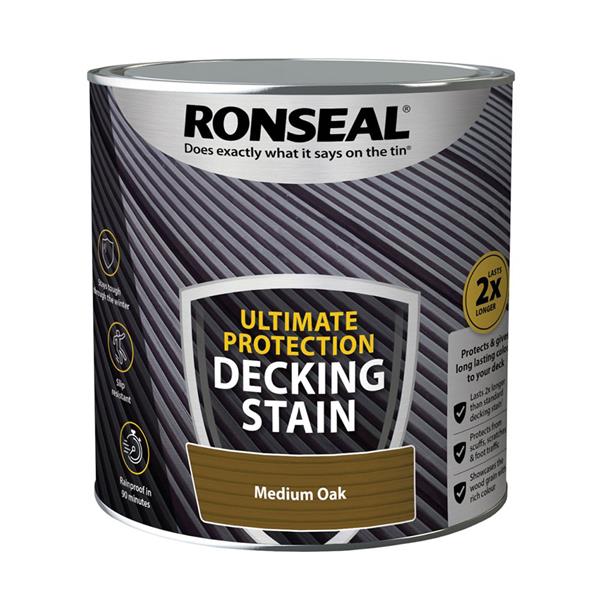 The Ultimate Protection Decking Stain Medium Oak 2.5L is a high-quality wood treatment designed to enhance and protect outdoor decking while adding a warm, natural oak tone. Formulated to penetrate deep into the wood, it helps guard against weathering, moisture, and everyday wear, ensuring long-lasting colour and durability. The medium oak finish highlights the natural grain of the timber, providing an attractive, rich appearance that complements a wide range of garden styles. Suitable for exterior use, this decking stain offers reliable protection while maintaining a smooth, well-finished look for outdoor spaces.