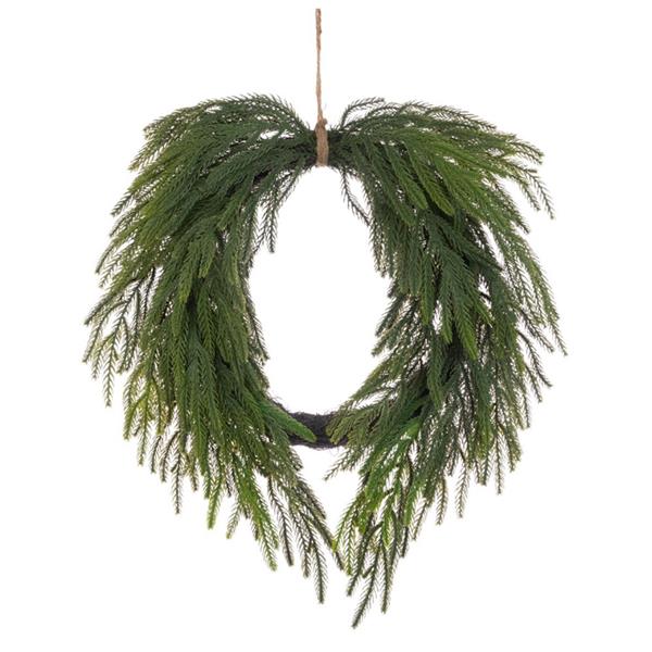 The floralsilk Waxed Pine Wreath 61cm offers a timeless and natural festive decoration, featuring realistic waxed pine needles for an authentic seasonal touch.