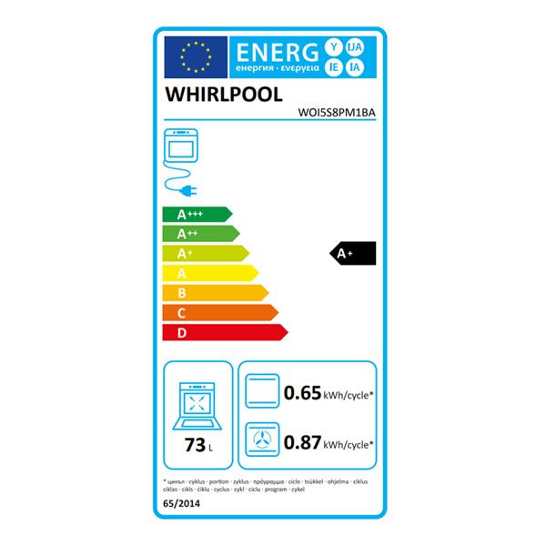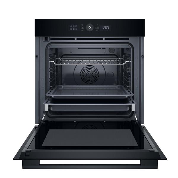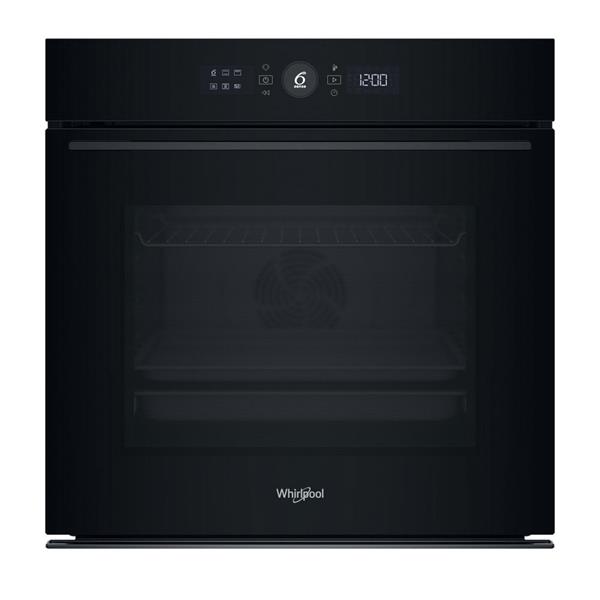 The Whirlpool WOI5S8PM1BA is a powerful and efficient built-in electric oven, finished in sleek black, that places smart technology at the heart of your cooking. It features the exclusive 6TH SENSE Technology, which takes the guesswork out of preparing meals. Users can select from 30 pre-set recipes, and the oven will automatically adjust the cooking function, temperature, and time settings while continuously monitoring the dish for perfect results. For capacity, the oven boasts an XXL cavity with a generous 73-litre usable volume and five different shelf positions, supported by telescopic oven guides, ensuring you have all the space and flexibility needed for large family meals and simultaneous baking.