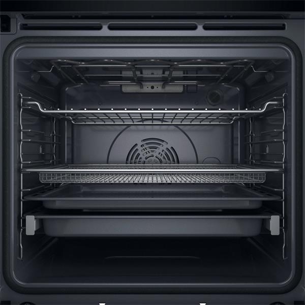 This oven offers a host of specialised functions to broaden your culinary horizons. The innovative Cook4 feature provides a unique level of flexibility, allowing you to cook up to four different dishes at the same time without the risk of aromas mixing. Healthier cooking is made simple with the Airfry function, which uses hot air circulation to deliver crispy, delicious food with up to 50% less fat, complete with a perforated AirFry tray. Other handy features include Ready2Cook, which eliminates the need for pre-heating by rapidly reaching the correct temperature, and Steam+, which uses steam to produce tastier, crunchier, and juicier results, ideal for everything from bread to fish.