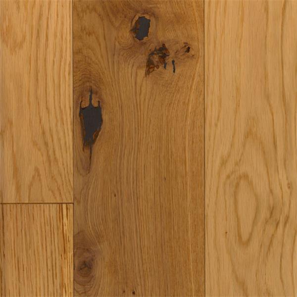 Measuring 16mm thick, each plank is finished with a UV satin lacquer, offering a natural look with a subtle light gloss. This flooring boasts a Character/Rustic grade, featuring a medium colour variation and striking large knots that enhance its authentic appeal.