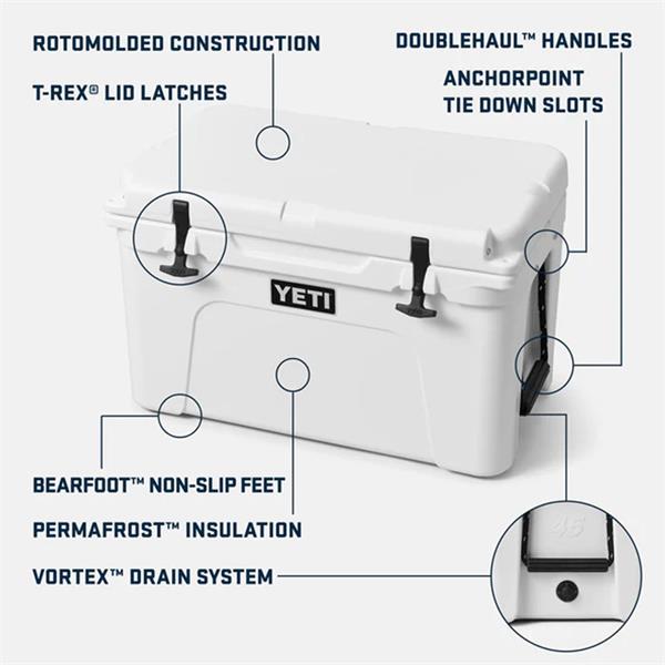 The Tundra 45 Cooler combines versatility with legendary YETI toughness. Its durable rotomolded construction and up to three inches of PermaFrost Insulation mean it’s built to last and will keep your contents ice-cold in sweltering conditions or your hot food warm despite the wind chill.