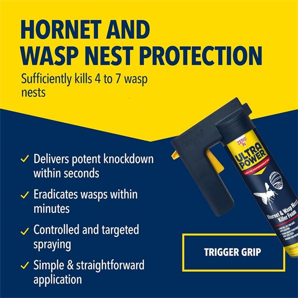 This wasp and hornet nest killer foam is a powerful insecticidal spray suitable for both indoor and outdoor use. With a spray reach of up to 4 metres, it allows you to treat nests from a safe distance. The 600ml can is capable of eliminating 4 to 7 nests, acting as both a wasp killer and nest destroyer.